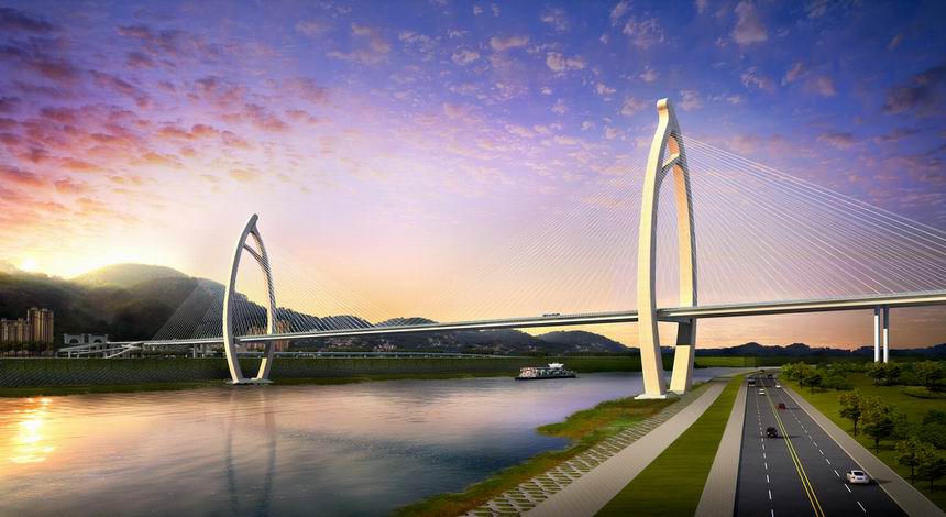 宜賓市鹽坪壩長江大橋連接宜賓市臨港經(jīng)濟(jì)開發(fā)區(qū)和鹽坪壩組團(tuán),路線總體呈南北走向,是臨港經(jīng)濟(jì)開發(fā)區(qū)與市區(qū)聯(lián)系的重要通道,建成后將極大緩解當(dāng)?shù)厝嗣癯鲂械慕煌▔毫?。大橋采用主?80米的混合式疊合梁斜拉橋,設(shè)計(jì)為雙向6車道,標(biāo)準(zhǔn)橋?qū)?0米,索塔總高達(dá)183米,采用“江豚”造型,施工難度較大,是整個(gè)工程的關(guān)鍵節(jié)點(diǎn)。目前,鹽坪壩長江大橋已完成主橋承臺(tái)及樁基施工,正如火如荼進(jìn)行索塔塔座施工,計(jì)劃今年完成索塔施工。