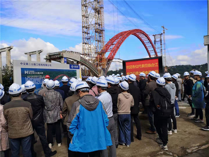學(xué)術(shù)報告會后,參會代表參觀了正在建設(shè)中的合江長江公路大橋以及已經(jīng)建成通車的合江長江一橋(波司登大橋),橋梁技術(shù)人員現(xiàn)場講解橋梁建設(shè)關(guān)鍵技術(shù),加深了參會代表對鋼管混凝土拱橋相關(guān)技術(shù)的理解,讓各位參會專家、學(xué)者利用橋?qū)@個學(xué)術(shù)平臺深入溝通,加強(qiáng)了專業(yè)技術(shù)資源共享,推動了橋梁建設(shè)技術(shù)水平不斷提升。