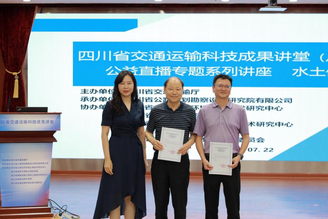 省交通運輸廳副廳長李紅到會致辭并為講座專家頒發(fā)授課證書。李紅副廳長強調(diào),四川交通建設面臨技術復雜、資源匱乏、地災頻發(fā)、氣候惡劣、生態(tài)脆弱等難題,作為長江黃河上游重要省區(qū),我省肩負著全國生態(tài)文明建設的重大使命,在交通強國強省的新征程中,面臨更大的挑戰(zhàn),迫切需要開展水土保持領域的科技攻關和規(guī)范管理工作。李紅副廳長強調(diào),要求廣大交通建設者和科技工作者要深入學習貫徹落實習近平總書記關于交通運輸和科技創(chuàng)新工作的重要論述,不斷增強以科技創(chuàng)新驅(qū)動加快建設交通強國強省的責任感、使命感、緊迫感,樹立終身學習理念,以交流促發(fā)展,積極參加交通科技成果講堂。
