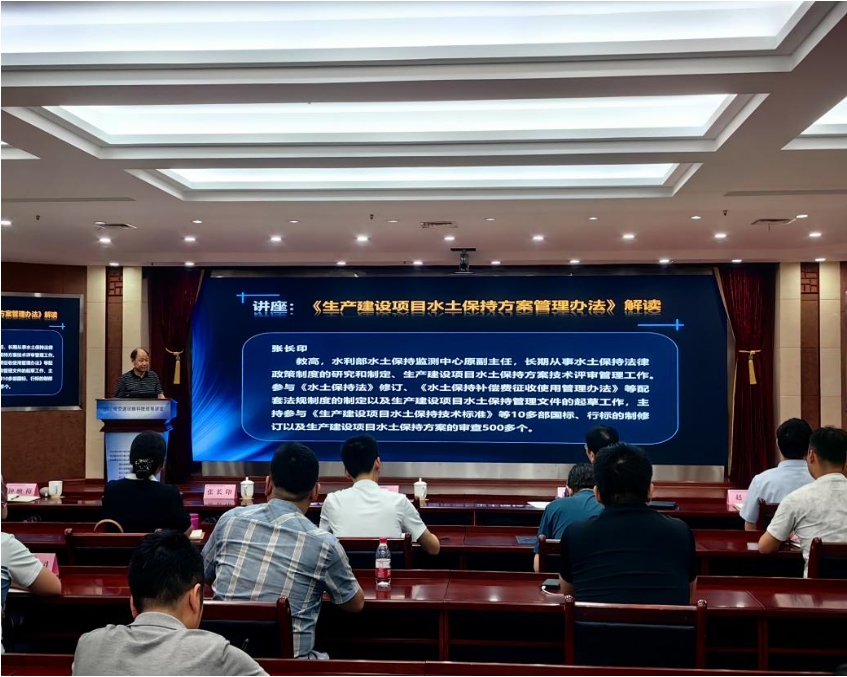 袁普金作了題為《生產(chǎn)建設項目水土保持綠色設計要求與實踐》的講座報告,從綠色設計的概念定義、實施主體、相關案例等三個方面對生產(chǎn)建設項目水土保持綠色設計進行了專題講授。