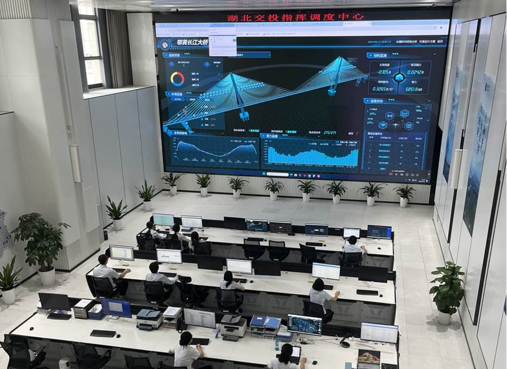 我司代表還參觀了湖北交投高質(zhì)量發(fā)展數(shù)字展廳和湖北交投橋隧健康監(jiān)測指揮調(diào)度中心,學(xué)習(xí)其在橋隧健康監(jiān)測與安全運營技術(shù)方面的經(jīng)驗和成效。