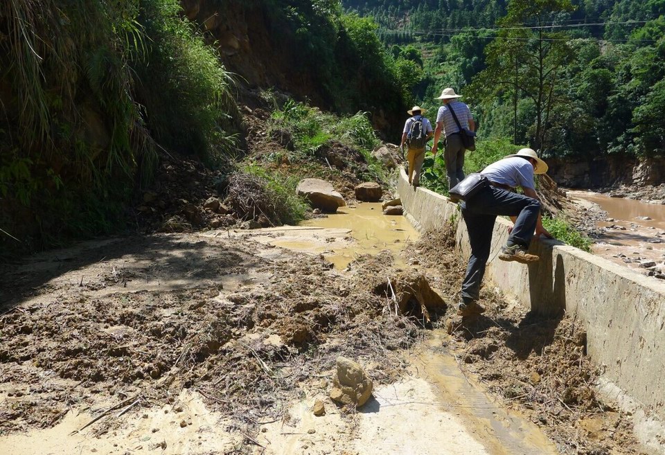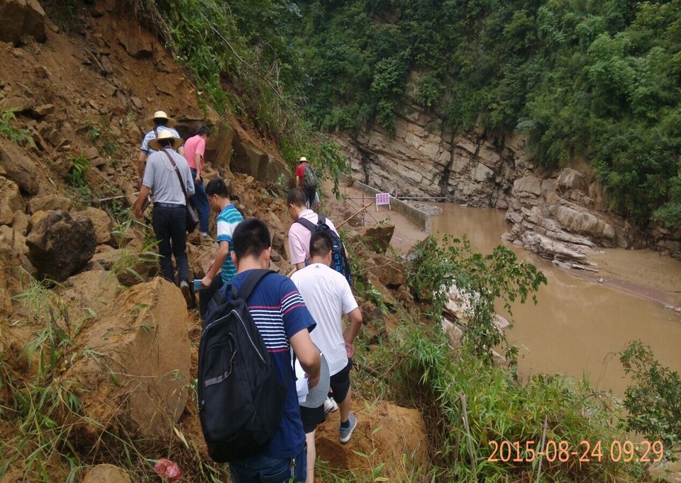 2015年8月16日,瀘州市敘永縣強(qiáng)降雨致使縣道010線兩河鎮(zhèn)~白臘鄉(xiāng)~高峰村段暴發(fā)多處泥石流、滑坡、水毀等重大地質(zhì)災(zāi)害,線路多處阻斷。在接到搶險(xiǎn)通知后,我院迅速響應(yīng),立即組成搶險(xiǎn)小組,由吳六政副院長(zhǎng)帶隊(duì),帶領(lǐng)總工辦、重慶分院、巖土分院等單位技術(shù)骨干奔赴災(zāi)區(qū)現(xiàn)場(chǎng)開(kāi)展踏勘排查,全力配合瀘州市委、市政府、市交通運(yùn)輸局開(kāi)展搶通保通工作。