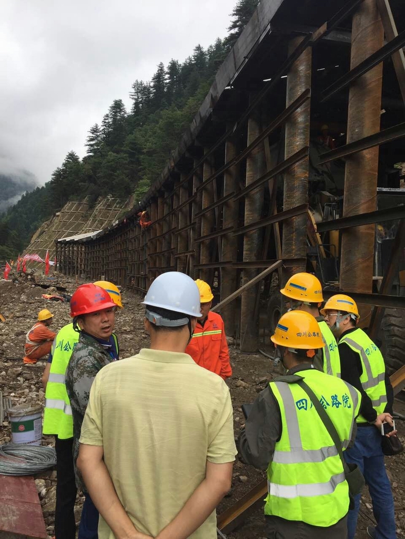 目前災(zāi)區(qū)應(yīng)急搶險中需設(shè)計出圖的15處最嚴重工點均由我院完成,為進一步加強災(zāi)害點處治的施工技術(shù)支持,全力配合施工保通工作,8 月17日,我院第五批抗震救災(zāi)技術(shù)專家一行5人趕赴災(zāi)區(qū),持續(xù)強化前方技術(shù)力量,全力保障現(xiàn)場工點處治、地災(zāi)再排查等相關(guān)工作。同時,一方面我院會同地方交通部門,進一步開展地災(zāi)再排查,對新發(fā)現(xiàn)的6個地災(zāi)隱患點確定處治方案,另一方面前后方提前統(tǒng)籌謀劃,組織人員、設(shè)備對G544線再次現(xiàn)場踏勘,完善資料收集,為后續(xù)災(zāi)后重建等系列工作奠定基礎(chǔ)。