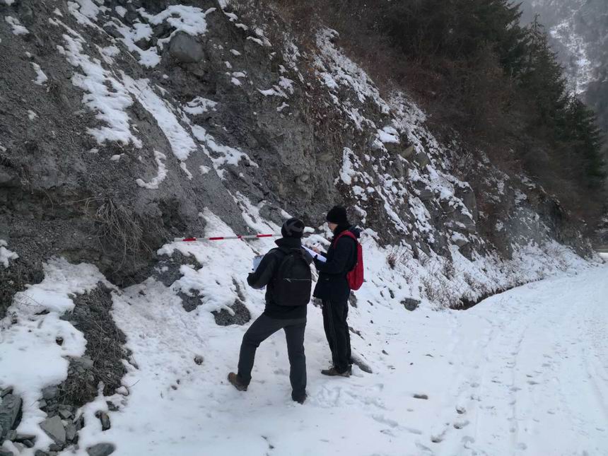 近日,我院派相關(guān)專業(yè)部門,對(duì)茂縣“6.24”地質(zhì)災(zāi)害S448疊溪至松坪溝公路恢復(fù)重建進(jìn)行了現(xiàn)場(chǎng)踏勘,并對(duì)全線進(jìn)行了外業(yè)調(diào)查。項(xiàng)目組調(diào)查人員冒著飛石、滑坡等危險(xiǎn),在冰天雪地中跋山涉水,克服重重困難,對(duì)全線道路受災(zāi)情況、重建方案逐一調(diào)查,收集到寶貴的原始資料,為后續(xù)設(shè)計(jì)提供支撐。