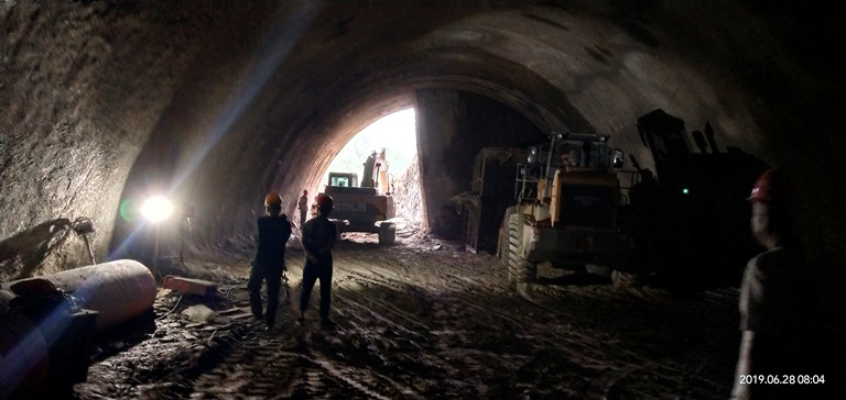 6月28日,我司設(shè)計(jì)的新地山隧道實(shí)現(xiàn)右線貫通,成為廣平高速全線首座貫通的隧道。該隧道平武端于滑坡中部進(jìn)洞,滑坡縱向長113m,橫向?qū)?80m,前后緣相對(duì)高差50m,廣元端于陡崖處出洞,隧道洞口地質(zhì)、地形條件復(fù)雜,洞身穿越全線典型的絹云千枚巖地層,遇水極易軟化發(fā)生隧道大變形風(fēng)險(xiǎn)。廣平高速走廊帶平行于青川—平武斷裂帶的高烈度地震區(qū),隧道軸線與巖石片理呈小角度斜交,產(chǎn)狀較陡,隧道施工安全風(fēng)險(xiǎn)高。