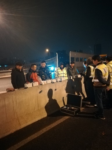 3月11日凌晨6點(diǎn),隨著最后一個(gè)測(cè)試工況的結(jié)束,我院圓滿完成了三環(huán)路擴(kuò)能提升工程琉璃立交L4聯(lián)主線橋和三環(huán)路南側(cè)S4聯(lián)加寬橋荷載試驗(yàn)現(xiàn)場(chǎng)測(cè)試工作。為降低對(duì)既有交通影響,我院精心組織,經(jīng)過(guò)5天的認(rèn)真準(zhǔn)備,完成了近200個(gè)測(cè)點(diǎn)的安裝調(diào)試工作,并利用周五至周日晚上11點(diǎn)至凌晨6點(diǎn)車流量較小的時(shí)間段,克服下雨等不利因素,連續(xù)奮戰(zhàn),圓滿完成本次荷載試驗(yàn)工作。