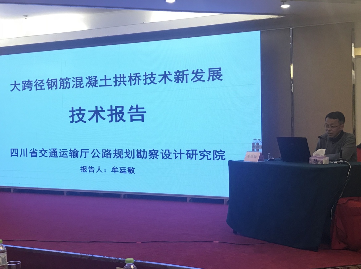 11月28日至30日,由中國公路勘察設計協(xié)會、中交公路規(guī)劃設計院有限公司主辦,《橋梁》雜志社承辦,我院協(xié)辦的《公路鋼筋混凝土及預應力混凝土橋涵設計規(guī)范》宣貫會在成都舉行。來自全國橋梁等專業(yè)技術人員120余人參會,我院總工程師牟廷敏帶隊參加宣貫會并向與會代表做了《大跨徑鋼筋混凝土拱橋建造技術的發(fā)展》專題報告。