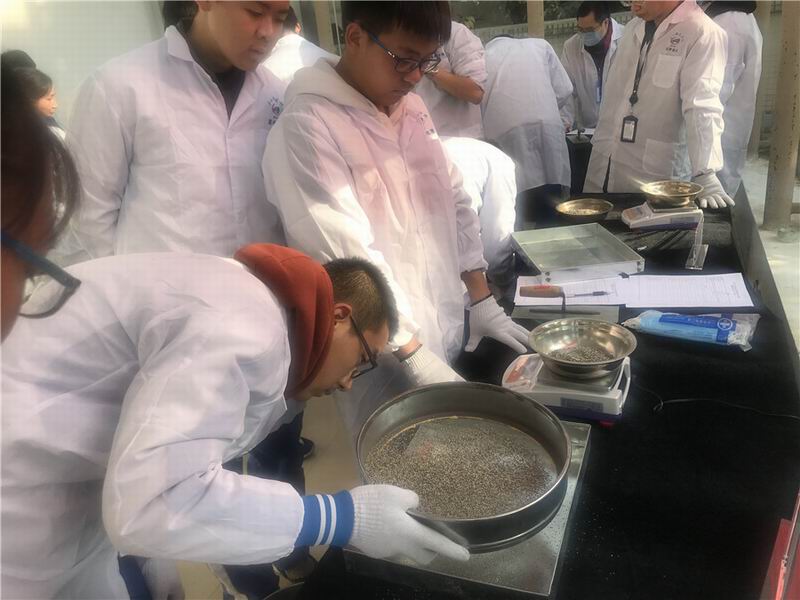下午,同學們參觀了我院橋梁檢測大廳、路面實驗室,通過導師耐心的講解,對國家重點科研項目、路面連續(xù)檢測工作和新技術、新工藝有了初步的了解。隨后,同學們分為5組,開展了細集料篩分試驗競賽,進一步學習了材料試驗檢測項目相關知識。在材料試驗實操競賽中,同學們認真細致、你追我趕、不分伯仲,又快又準地完成了比賽任務,涌現(xiàn)了不少“準確之星”、“速度之星”。比賽后,同學們興奮地說“將來我也想干這一行,我也想當設計達人。”