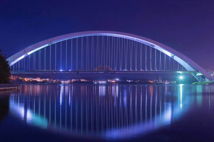 11月27日,我院設(shè)計(jì)的廣西柳州官塘大橋正式建成通車(chē),為具有“橋梁博物館”之稱(chēng)的柳州市新添了第21座跨江大橋,也為廣西壯族自治區(qū)成立60周年獻(xiàn)上一份民生“大禮”。柳州官塘大橋橫跨柳江,主跨457m,設(shè)計(jì)時(shí)速60Km/h,雙向6車(chē)道,是目前世界第一大跨度有推力提籃式鋼箱拱橋,世界第九大跨度的鋼箱拱橋。該橋采用低位拼裝、大節(jié)段整體提升法安裝主拱肋,整體提升的中拱段跨徑262米、總提升重量5885噸,提升高度67.27米,創(chuàng)下了整體提升拱肋跨徑、提升總重量、提升高度三項(xiàng)“世界第一”的紀(jì)錄。