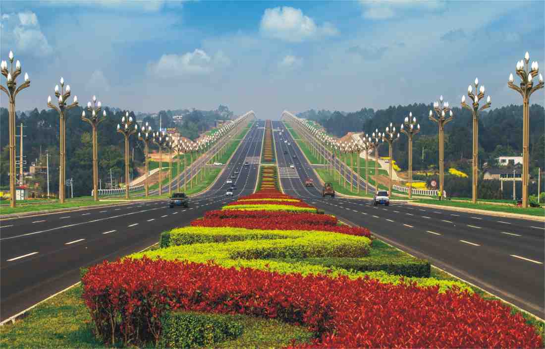 天府大道是成都市的主軸線,天府大道南延線由一、二、三期組成,總長(zhǎng)近27公里,主道為雙向8車道,最高時(shí)速80公里。按高標(biāo)準(zhǔn),善創(chuàng)新,優(yōu)景觀設(shè)計(jì)。