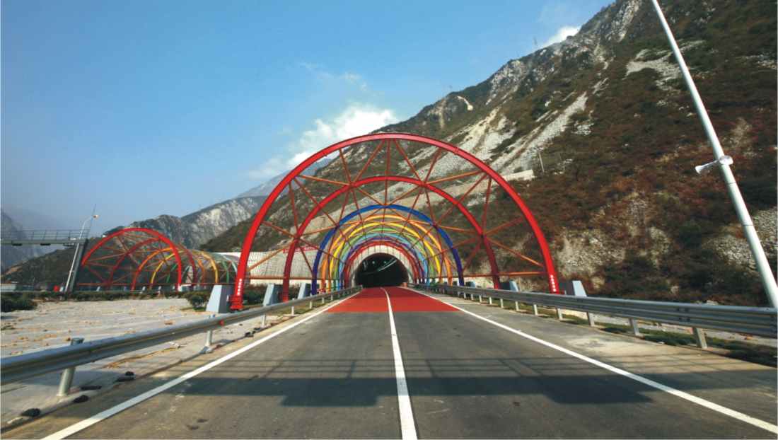 共8座隧道,其中特長隧道5座,2013年建成, 地處5·12汶川大地震區(qū),受龍門山中央斷裂帶影響